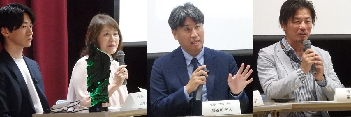 セミナーでは昨年度この事業でプロ人材を活用した長谷川造園(同市坂井町)代表取締役の長谷川晃大さん、後藤塗装(同市春江町)専務取締役の後藤寿和さん、繊維業の「大喜」(同市丸岡町)の山本優子専務取締役、営業・開発担当の山本峻太さんの4名が登壇、カルビンの伊田拓良執行役員が進行役を務め、パネルディスカッション方式で1年間の取り組みを紹介した。