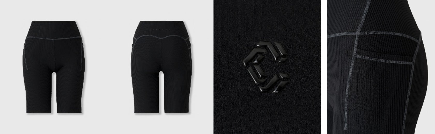 ブラトップとセットアップでの着用が可能なショートレギンスは、身体に沿うシャープなシルエットでアクティブな動きにフィット。ウエスト内側には滑り止めを施し、激しい動きの中でも安定した着用感をキープ。両サイドにポケットを備え、スマートフォンなどの携帯にも対応する実用性を兼ね備えています。