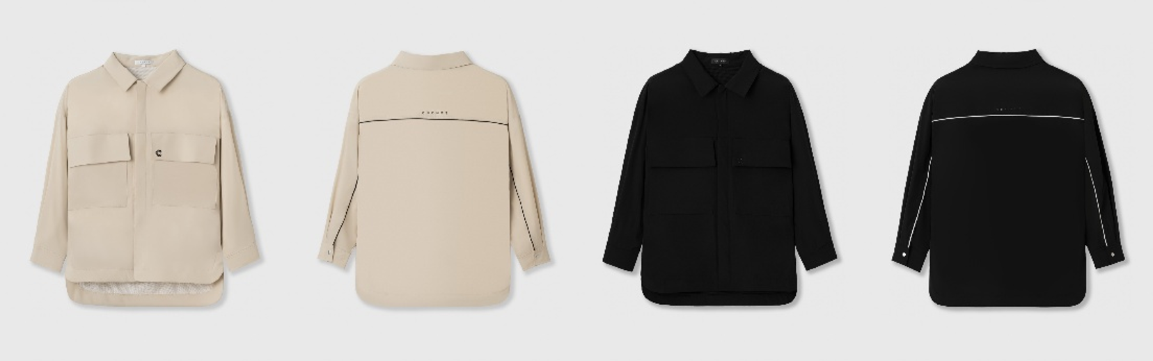 シャツの軽やかさとジャケットの存在感を融合したアイテム。トレーニング前後の移動からデイリーシーンまで活躍し、都会的でスポーティーなスタイリングを演出します。裏地にはメッシュ素材を採用し、通気性と軽やかな着心地を実現。さらに袖のタックや配色パイピングが、立体感とデザイン性を高めています。