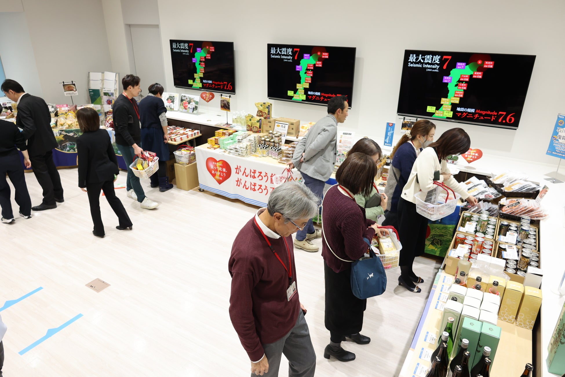 株式会社DTS(東京都中央区、代表取締役社長 北村 友朗)は、能登半島地震(2024年1月)、能登豪雨(2024年9月)により甚大な被害を受けた石川県能登半島に対して、被災地復興支援を目的とした物産展「みんなで応援!石川・能登物産展」を、2024年12月20日(金)本社ビル内で開催しました。DTSは石川県が推進している「能登のために、石川のために 応援消費おねがいプロジェクト」に賛同し、特産品を役員・社員だけではなく、グループ会社や当日来社されたお客様にも購入いただき、被災地の支援に協力しました。
