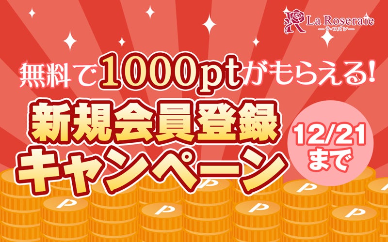 無料登録で“1000ポイント”!作品レビューでもらえるポイントも期間限定増量中!!BL専門電子書籍サービス「La Roseraie(ラ・ロズレ)」にて会員限定お得なキャンペーンを開催中!!!