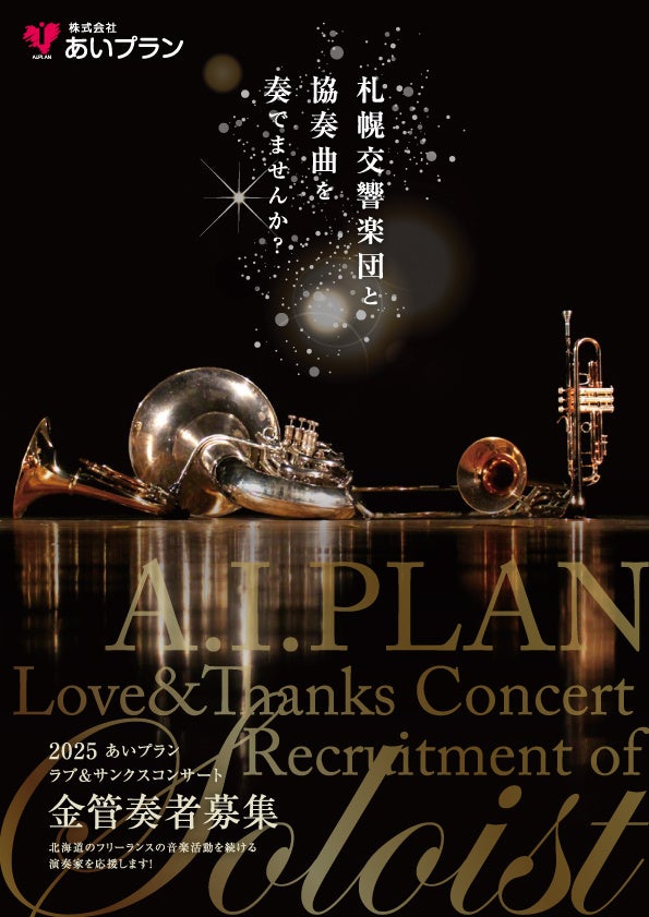 株式会社あいプラン(北海道札幌市)が毎年開催している、『ラブ&サンクスコンサート』。2025年のコンサートで演奏して下さる金管奏者を募集いたします。第一次応募締切は10月31日(木)です。