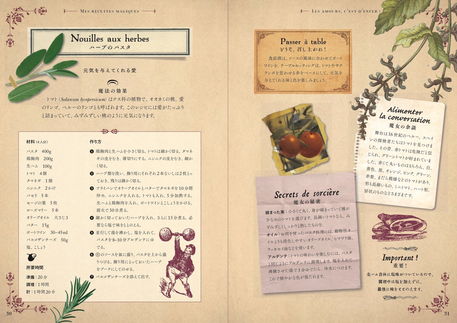 魅惑のレシピ、人を惑わす美的センス、不思議な呪文と文化的教養など、欲しいものを手に入れて自信に満ちた女性になるための奥義が満載! 作って食べて楽しんで。フランスのエスプリあふれる魔法の本の誕生です。