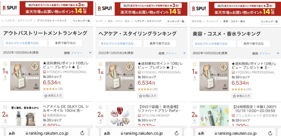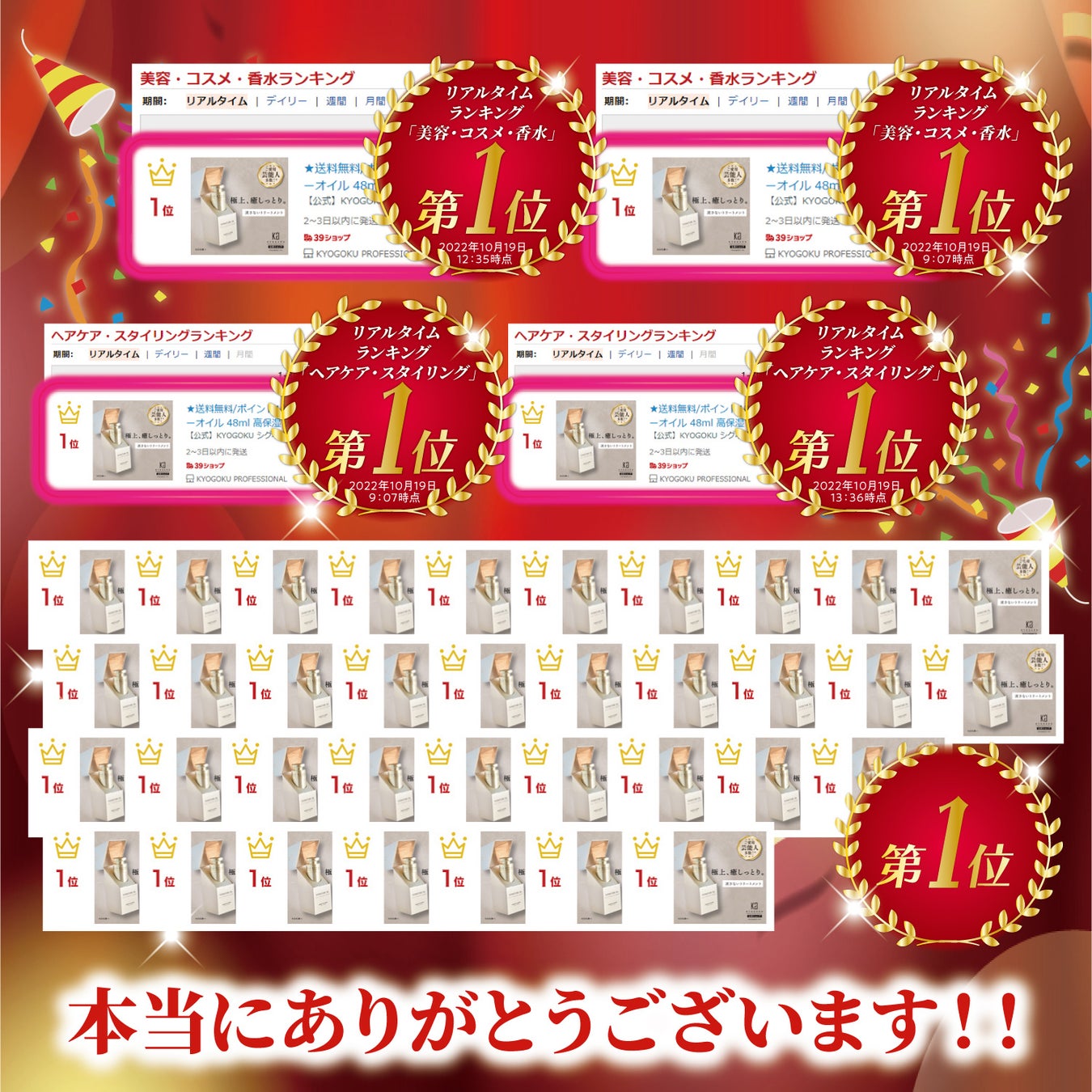 この度、株式会社kyogokuが展開する美容ブランド「KYOGOKU PROFESSIONAL」でも人気のアウトバストリートメント「KYOGOKU シグネチャーオイル」が楽天の人気ランキングで38冠を達成いたしました。