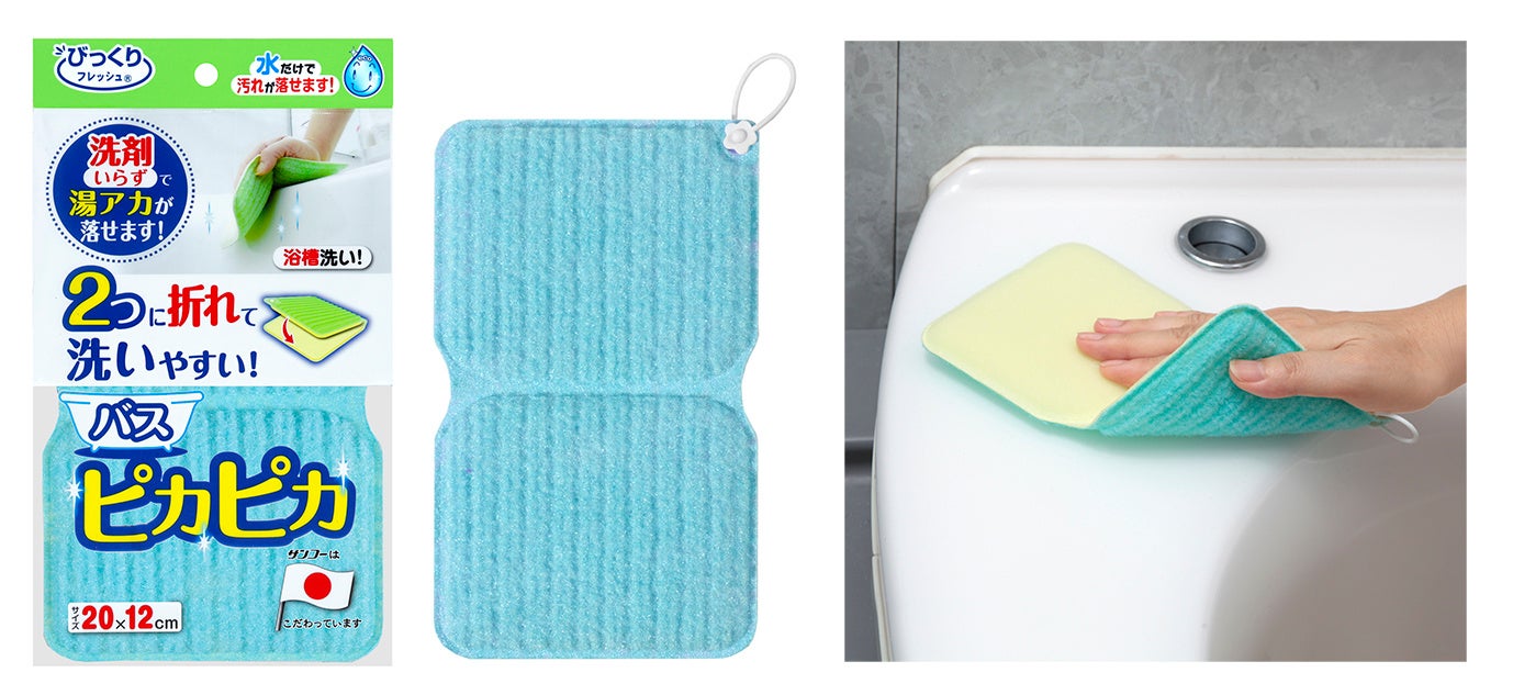●特殊形状の繊維を使用しているので、水だけでも湯アカなどの汚れを簡単にかき落とすことができます。