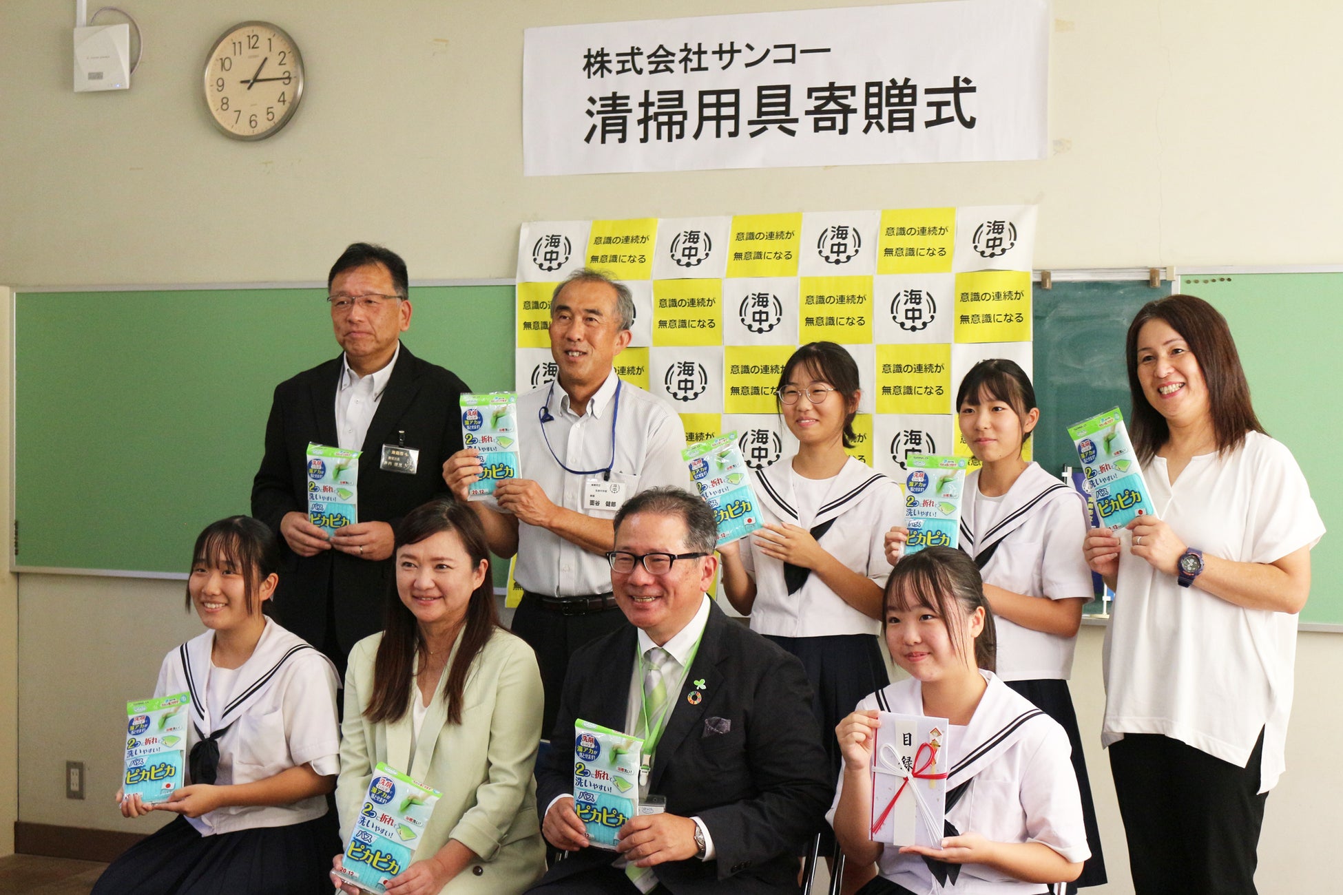 【9月24日「清掃の日」】サンコーの掃除用品1000個を海南市の小中学校へ寄贈