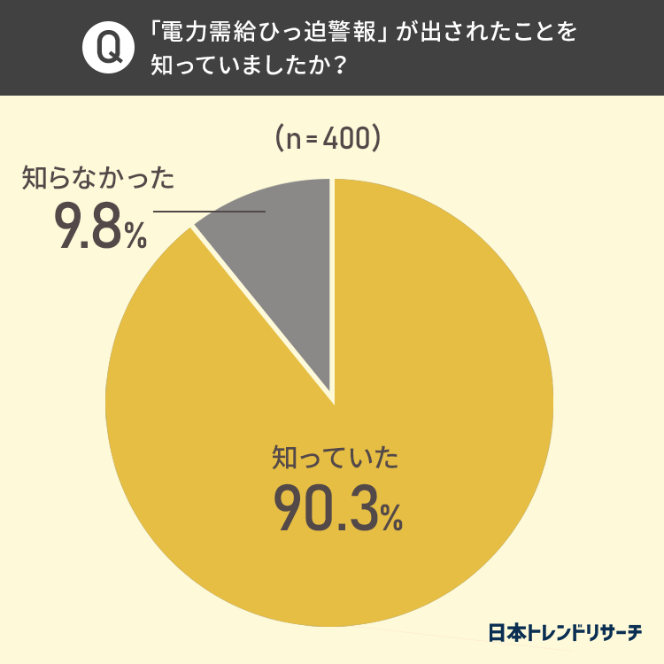 初めに「電力需給ひっ迫警報」が発令されたことを知っていたか聞きました。