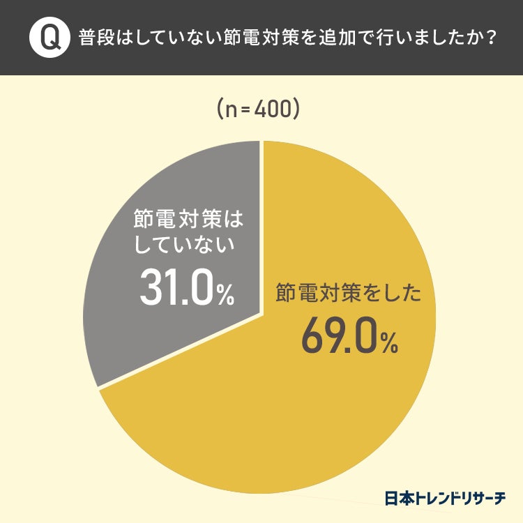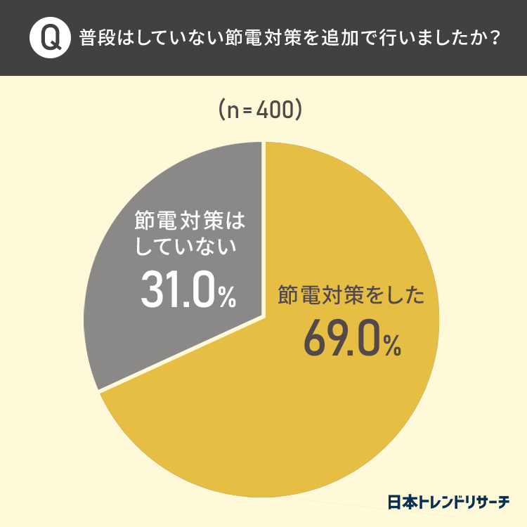 【電力需給ひっ迫警報】対象エリアに在住・通勤している方の69.0%が、発令を受けて「普段はしていない節電対策をした」
