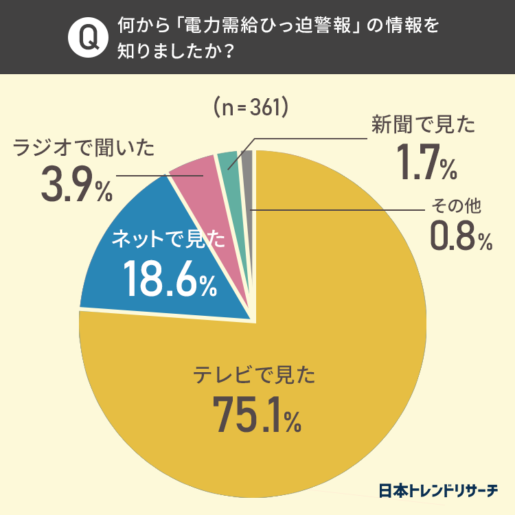 「知っていた」と回答した361名の方に、何から「電力需給ひっ迫警報」の情報を知ったのか聞きました。