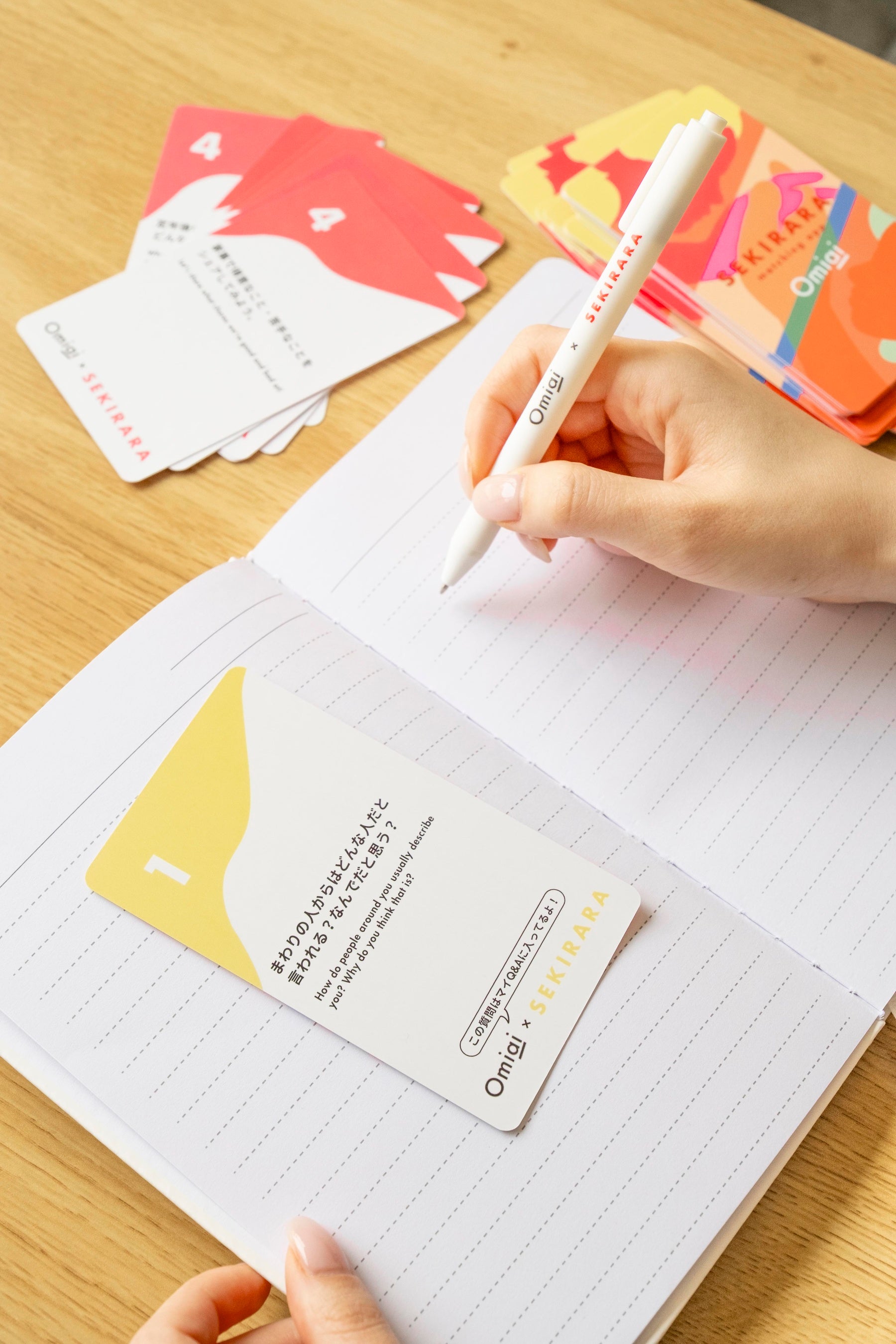 ・セット内容:「 Omiaiオリジナル マッチングアプリ用セキララカード」、オリジナルノート、ペン
