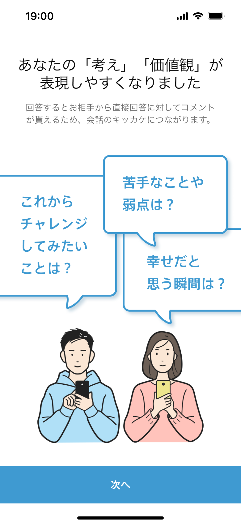 知りたい、伝えたい価値観や考え方を、出会いの初期でも共有しやすくし、自己開示の心理的ハードルを下げる