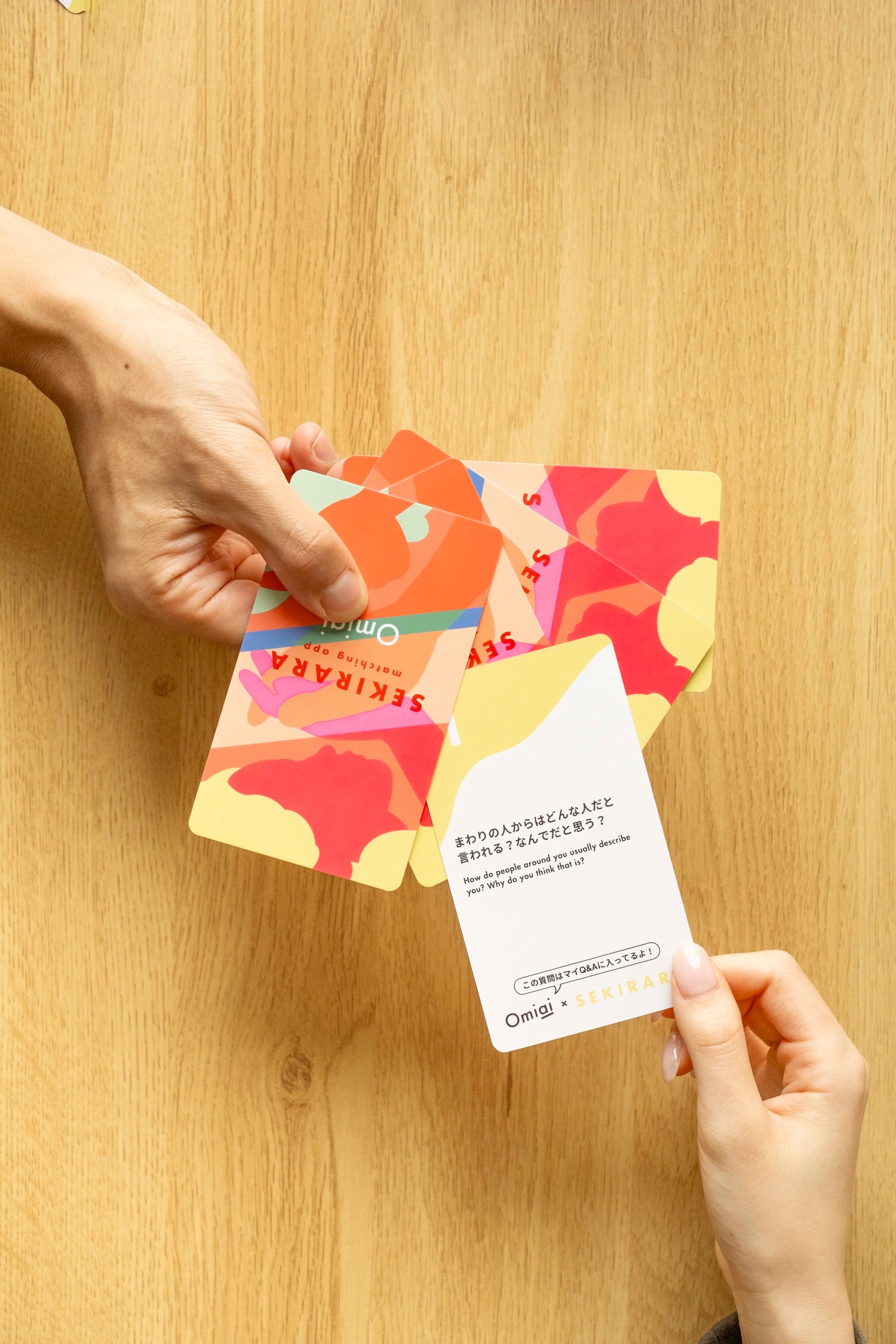 また、「マイQ&A」の考え方はプロフィール上だけでなく、マッチング後の会話の中でも活かせるものだと捉えています。そこで今回、「マイQ&A」を“手に取れる形”に具現化した「Omiaiオリジナル マッチングアプリ用セキララカード」を制作し、限定BOXとして新発売いたします。