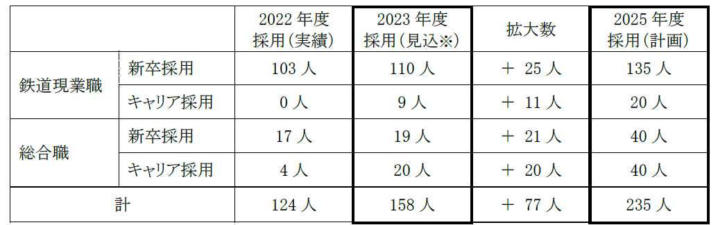・2025年度入社の採用数を鉄道現業職・総合職合わせて、235人に拡大します。