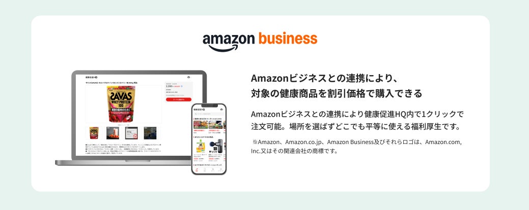 Amazonビジネスとの連携でプロテインやサプリ、睡眠改善グッズも割引価格で購入可能、従業員の健康習慣を幅広く支援する福利厚生