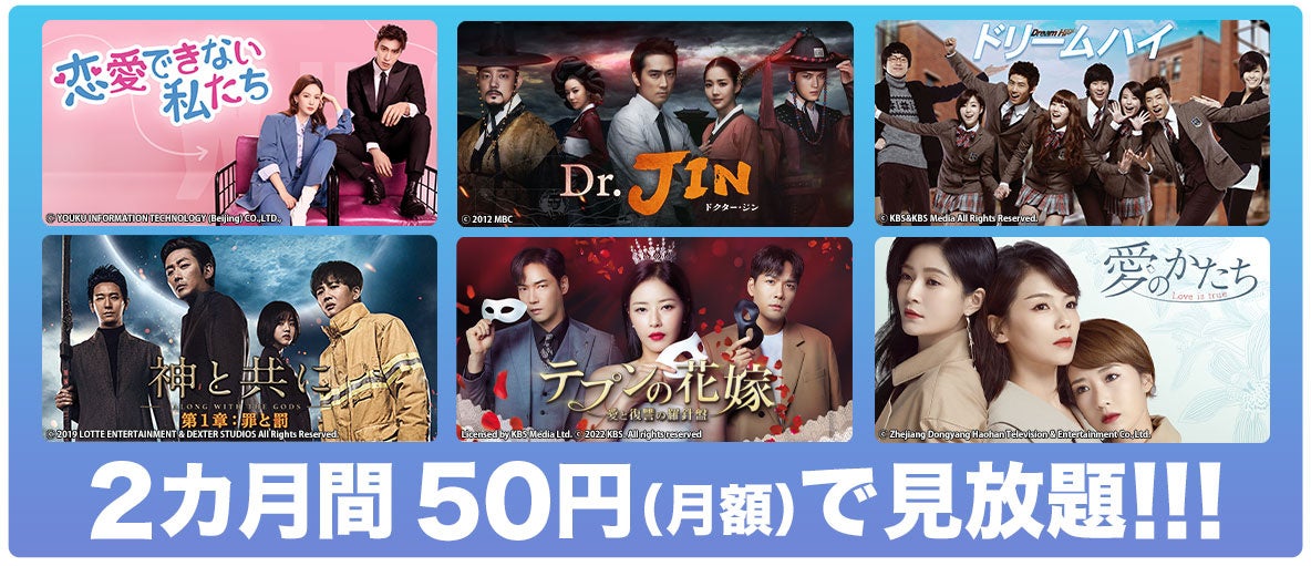 さらに、「Dr.JIN」や「テプンの花嫁~愛と復讐の羅針盤」といった「チャンネルK」独占配信作品も今なら全て2カ月間・月額50円でお試しいただけます。