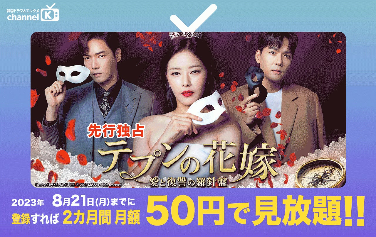 「チャンネルK」のご利用にはAmazonプライム会員への加入が必要で、既にプライム会員の方は月額550円(税込)、新規ご登録につき14日間無料でのお試し視聴が可能となっていますが、一人でも多くの方に韓国ドラマの魅力を届けたいという願いからこの度、8月8日(火)~8月21日(月)の期間限定で、「チャンネルK」に新規でご登録いただいた方を対象に「チャンネルK」の全コンテンツを最初の2ヵ月のみ月額50円でお試しいただける特別なキャンペーンをご用意いたしました。