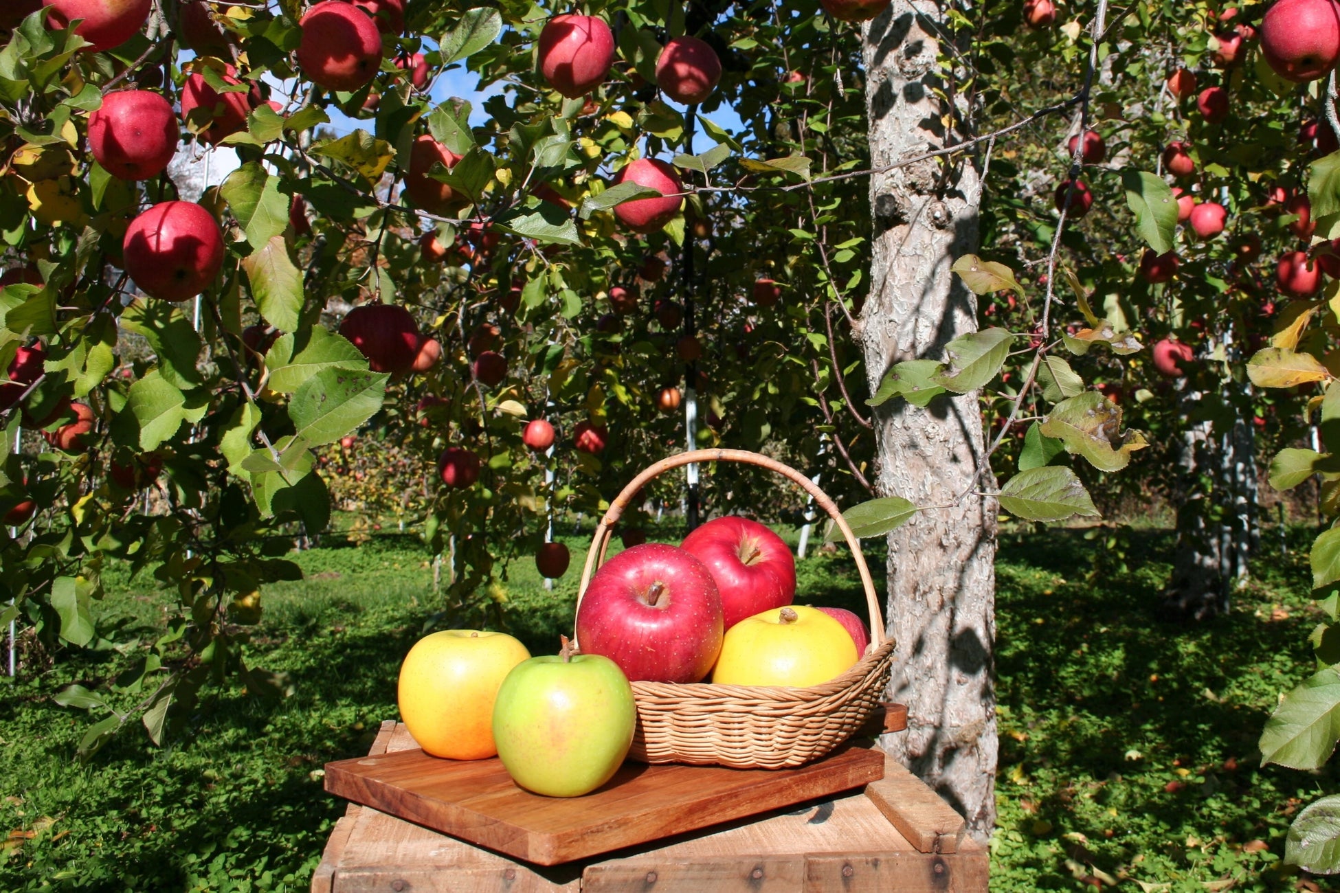 広大な土地で一つ一つ生き生きと大切に育てられたりんごは、丸々として色鮮やか。