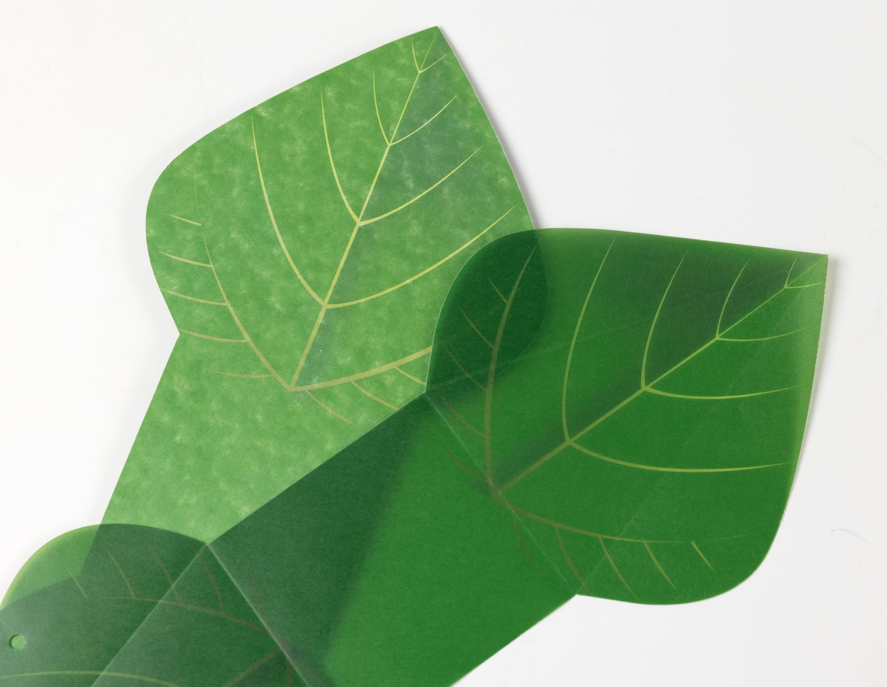 今回の試作品製造では、お花の部分はトレーシングペーパーを使用。葉っぱの部分はトレーシングペーパー及びプリマN-FSという特殊紙の2パターンでテスト製造を行いました。