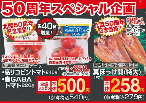 平和堂(滋賀県彦根市、代表取締役社長執行役員:平松正嗣、以下「平和堂」)は、2023年10月に迎える北陸出店50周年を記念して、福井・石川・富山県内の店舗において、感謝の50周年スペシャル企画を実施します。