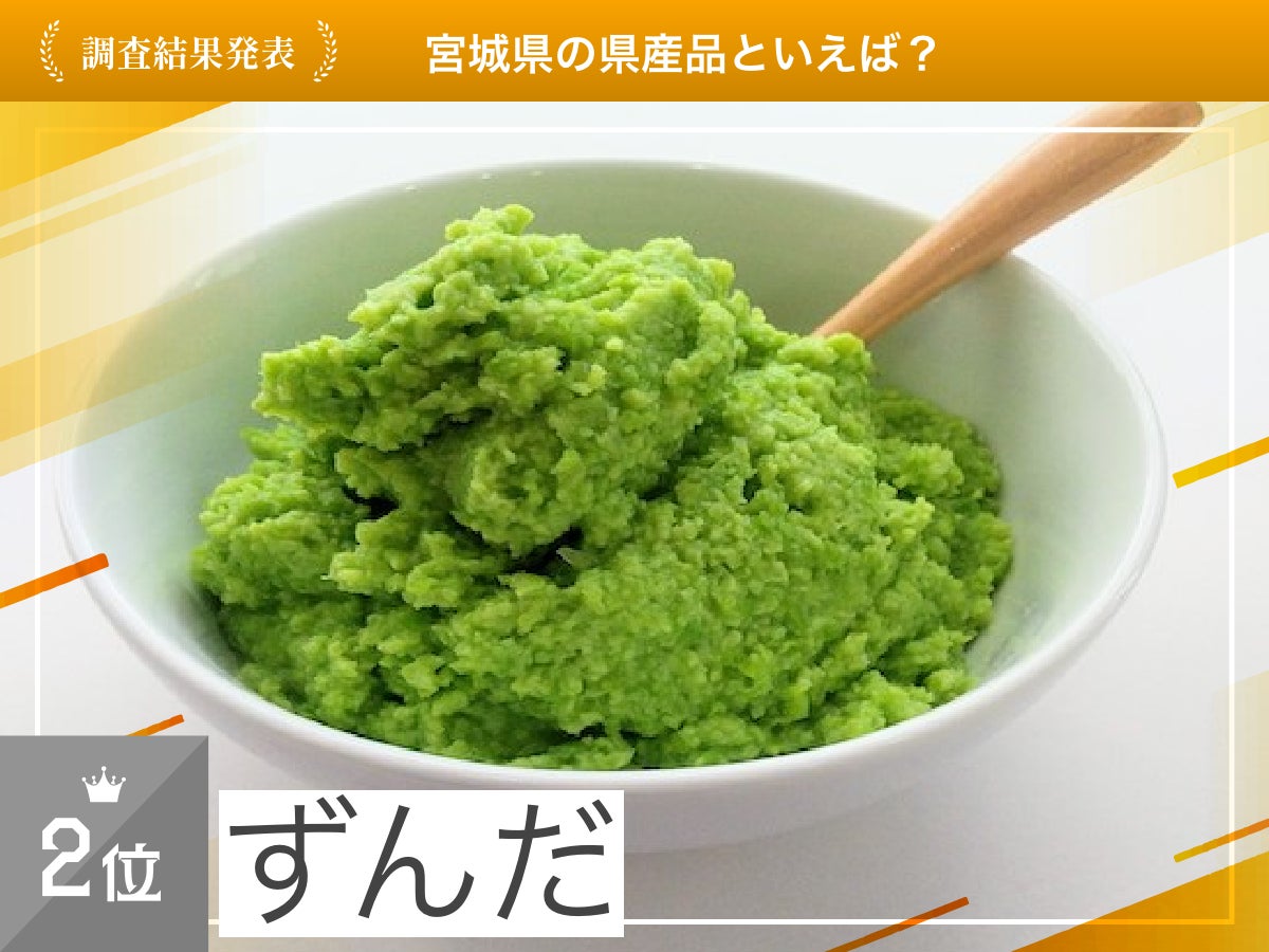 約650人の宮城県ファンに「宮城県の県産品といえば?」をアンケート調査したところ、1位「牛タン(312票)」、2位「ずんだ(105票)」、3位「笹かまぼこ(94票)」という結果になりました。