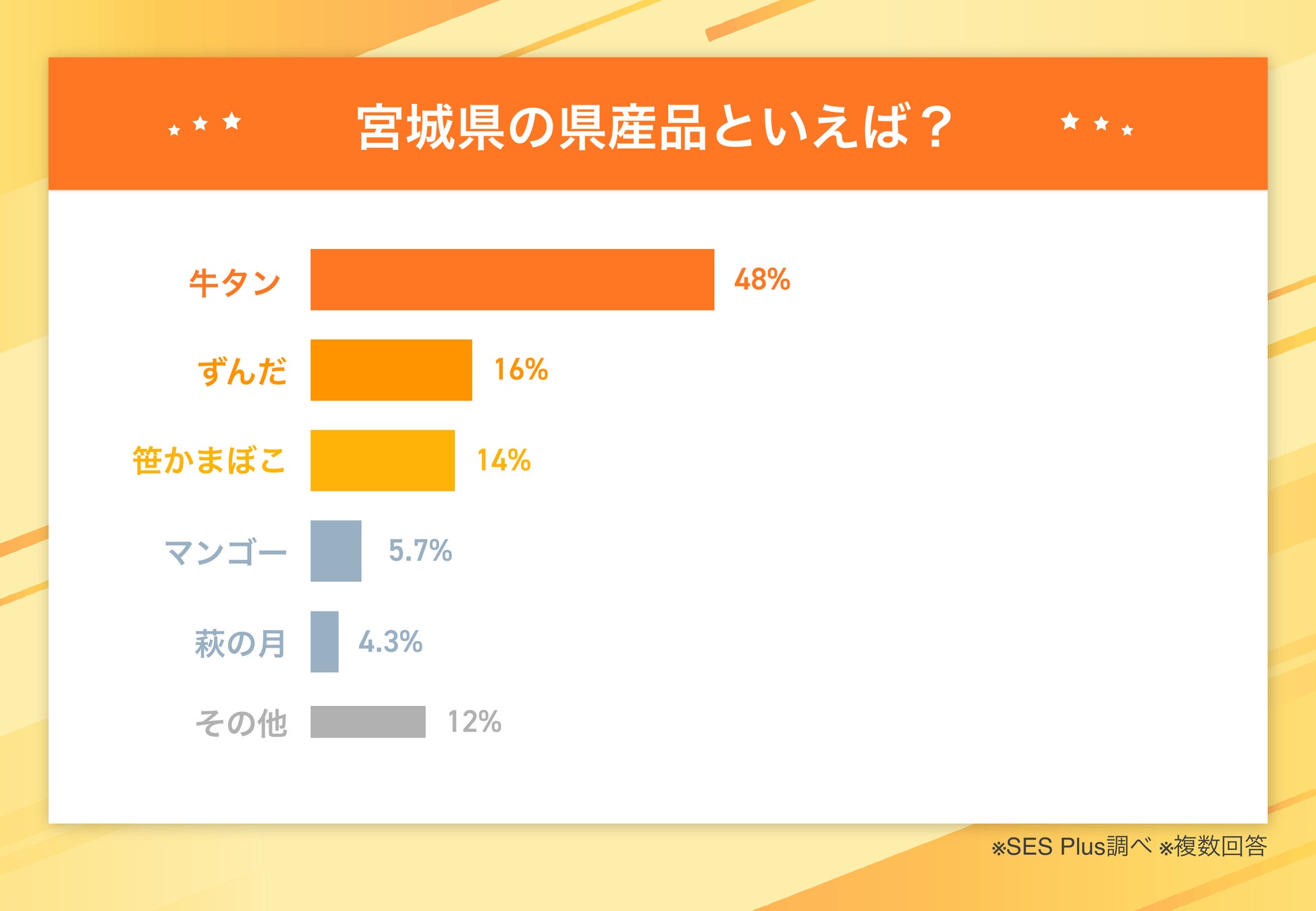 宮城県内・県外の宮城県ファン"男女約650人"を対象に「宮城県の県産品といえば?」のアンケート調査を実施!