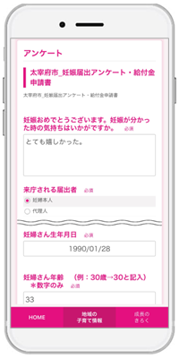 太宰府市は『母子モ』の追加機能を伴走型相談支援事業に活用し、妊娠届出と出産応援給付金の申請、赤ちゃん訪問事前アンケートの提出が、『母子モ』を通じてアプリから可能となり、時間や場所を問わず簡単に提出できるようになります。