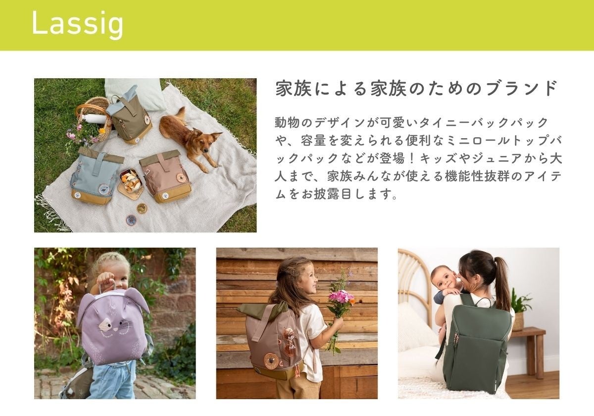 今回の目玉は、ドイツ発キッズバッグのブランド「Lassig」です。赤ちゃんの荷物を入れて持ち運びやすいバッグや子供用の可愛いリュックなど、パパママとキッズに人気のバッグを扱うブランドです。さらに、b.boxの新作ランチボックスとドリンクボトルも大注目!春の新生活にぴったりな子どもから大人まで幅広い世代で使えるランチボックスや、近年需要が高まる大容量のスタイリッシュなドリンクボトルなどが登場します。数多くの新作アイテムを、直接手に取ってご覧いただける絶好の機会です。皆様のご来場を心よりお待ちしております。
