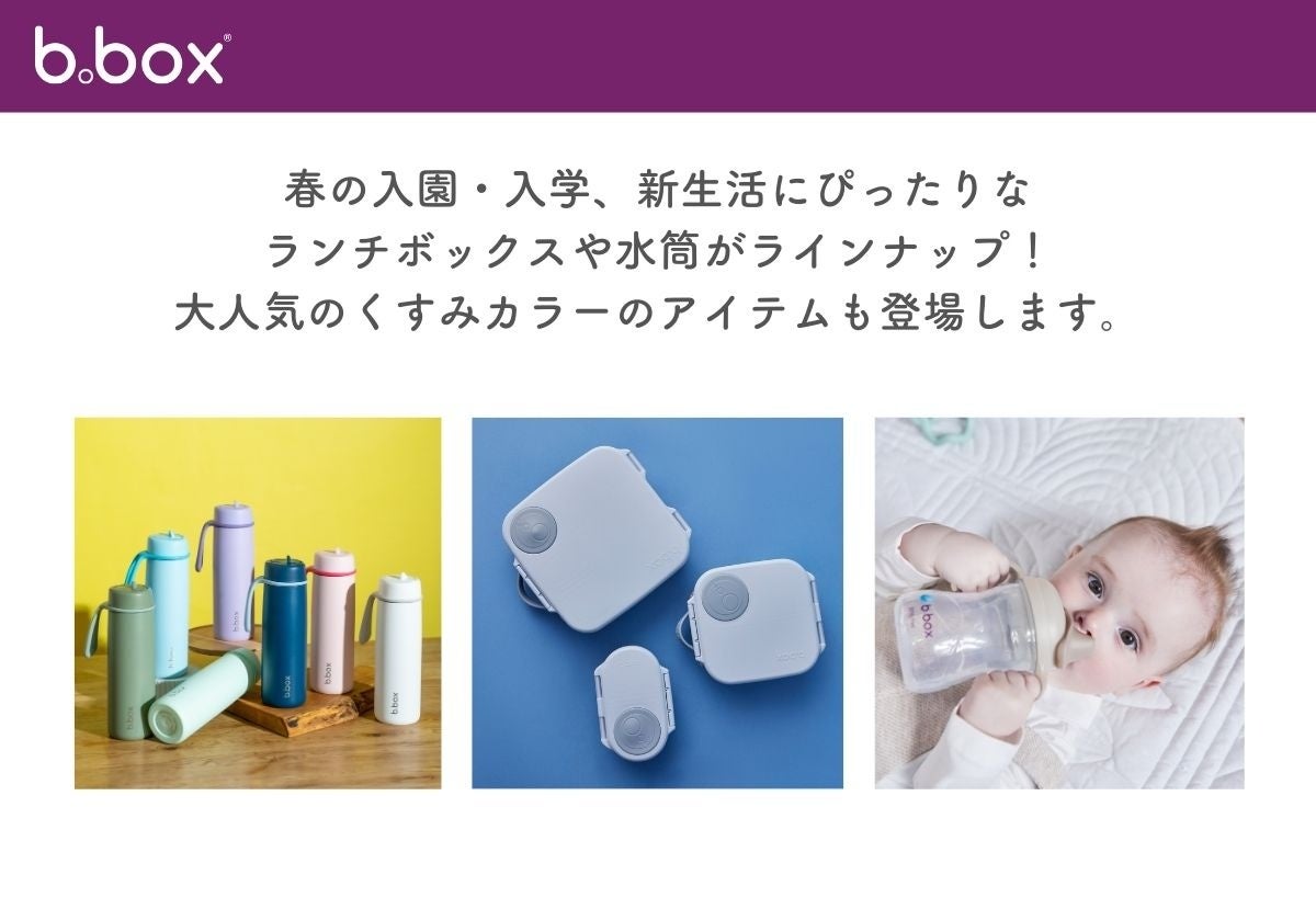 b.box(ビーボックス)は、2007年にオーストラリアで誕生しました。本国では取扱店舗が2,000店舗を越える人気を誇り、Sippy cup(シッピーカップ)など多彩なお食事アイテムを提供しています。実際の育児の経験から「こんなアイテムあったらいいのにな」という声を形にし、ビーボックスならではのデザインと実用性を両立したアイテムが続々と登場しています。今ではその人気はオーストラリアのみならず、世界45カ国以上で支持されるグローバルブランドへと成長しています。