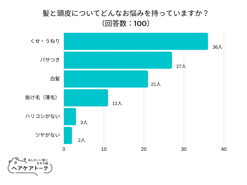 【調査レポート】髪と頭皮についてどんなお悩みを持っていますか?1位は「くせ・うねり」でした!
