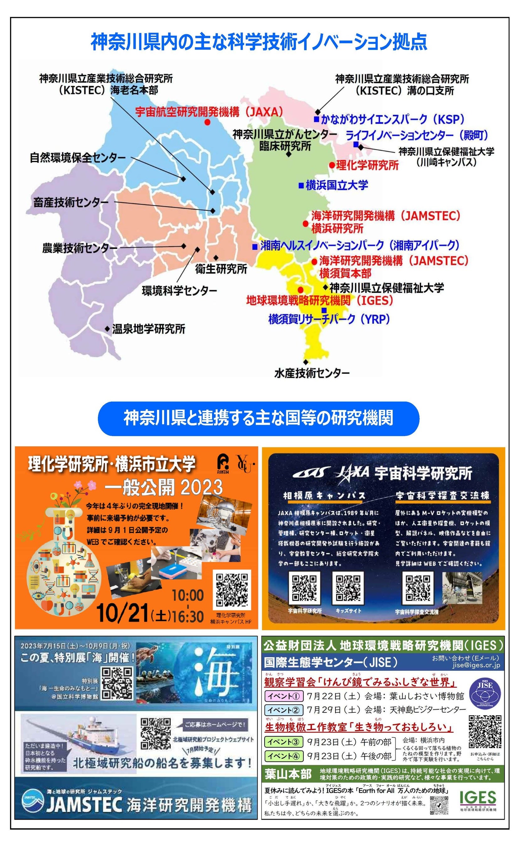 リーフレットには、実施機関の行事案内の他、県内の主な科学技術イノベーション拠点を紹介していま