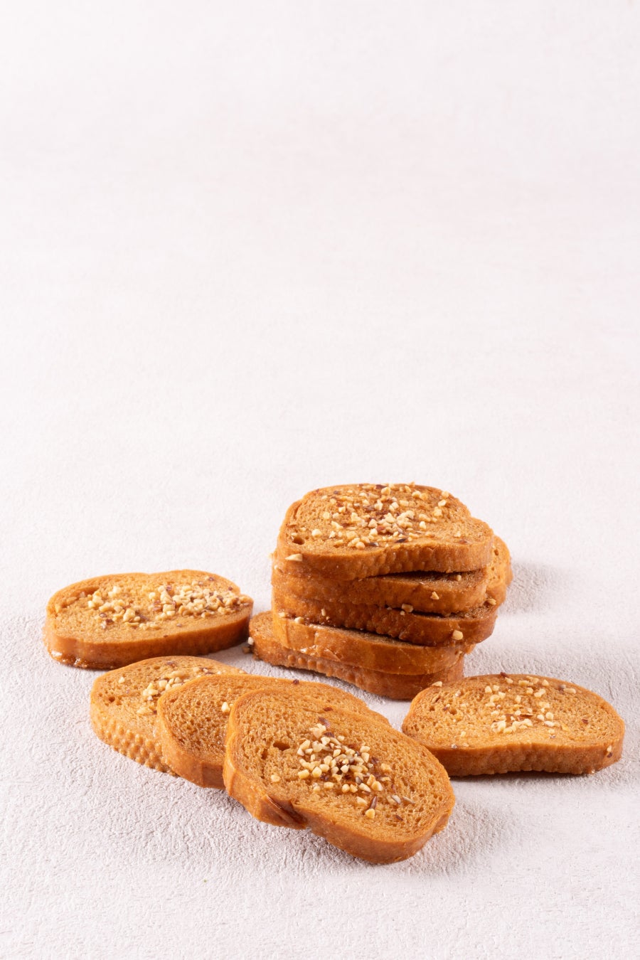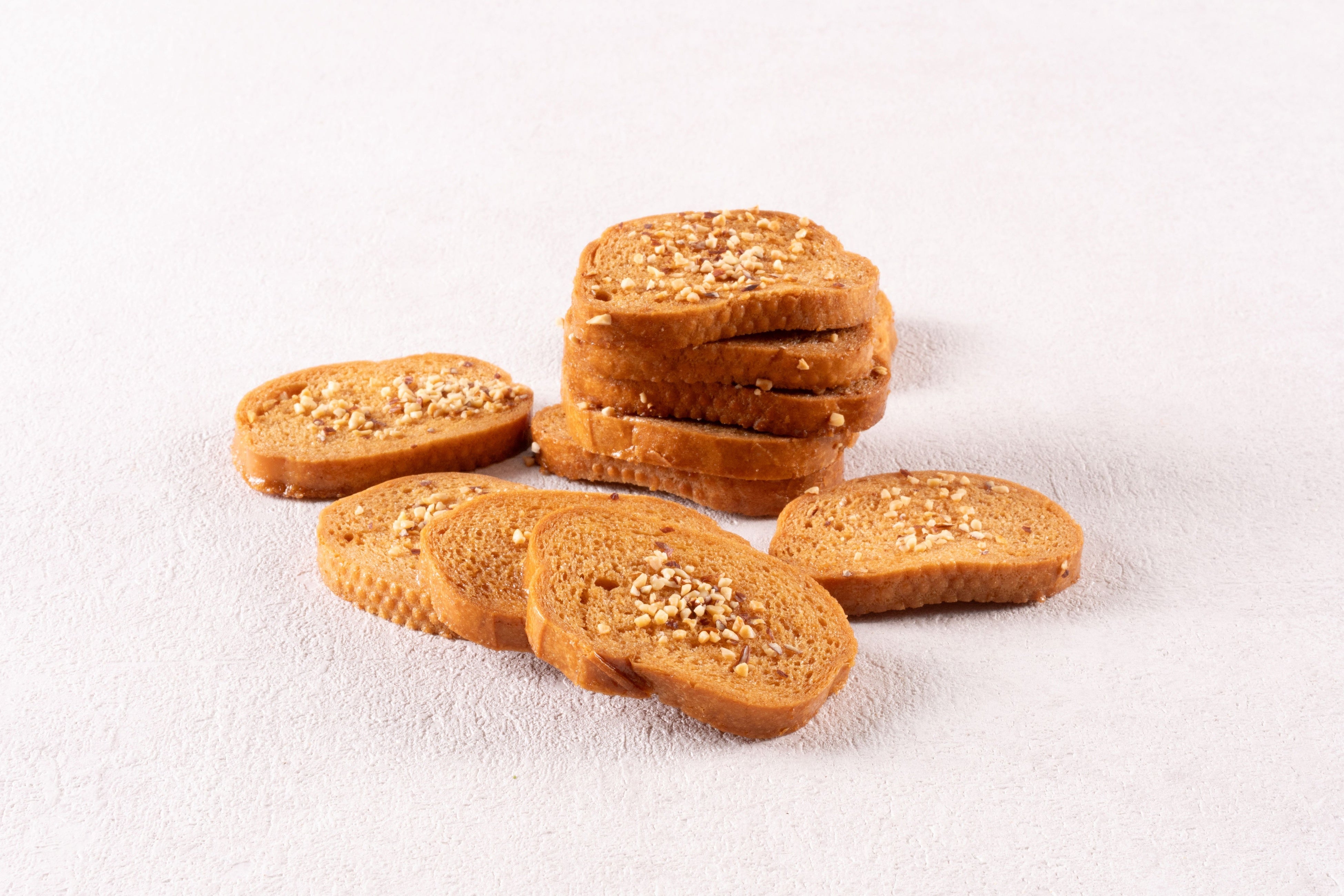 バターと深く焦がしたキャラメルが溶け合う濃厚な味わいラスク専用に焼き上げたバゲットに、発酵バターと沖縄黒糖のコクを加えたキャラメルペーストをたっぷり染み込ませました。石川県産の珠洲の塩とアーモンドダイスがアクセントになっています。j