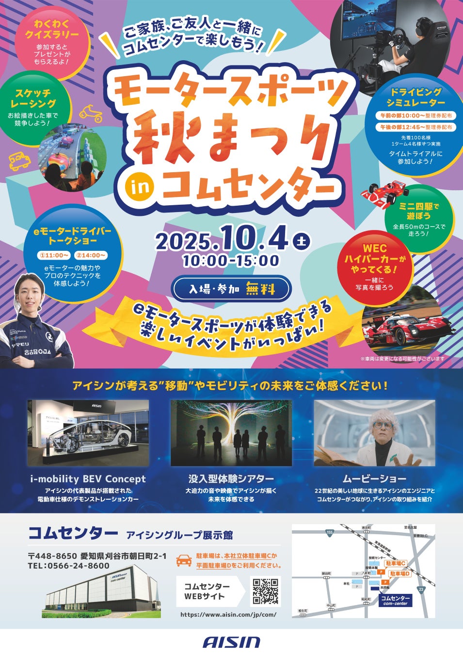 株式会社アイシン(本社:愛知県刈谷市、取締役社長:吉田 守孝)は、10月4日(土)にアイシングループ展示館「コムセンター」を特別開館します。