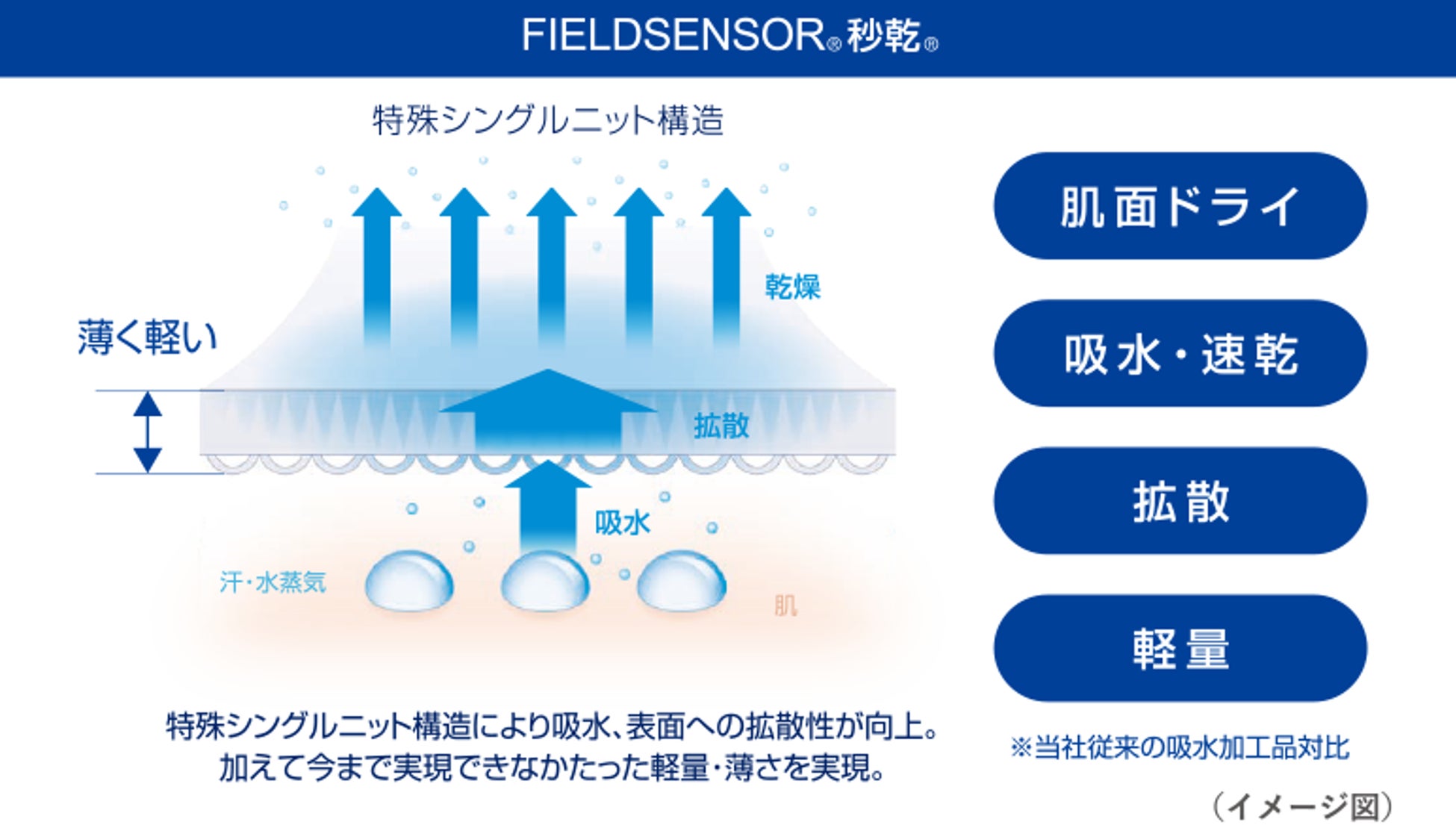 ~汗によるべたつき、肌へのまとわりつきなどを感じさせずサラッと爽快な着心地を実現~