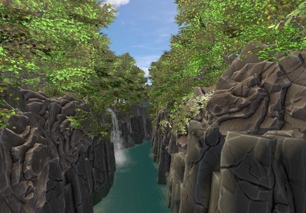 高千穂峡の人気アクティビティであるボート漕ぎをゲームで体験することができます。