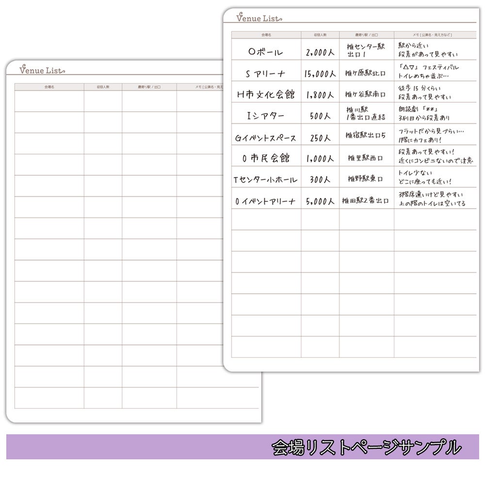 また、チケットの申し込み日や当落、支払期限などを記録できる「チケット情報ページ」、ファンクラブや月額サービスのID・パスワード、会費などをまとめて管理できる「会員情報ページ」など、推し活に必要な情報を網羅的に記録できる構成となっています。