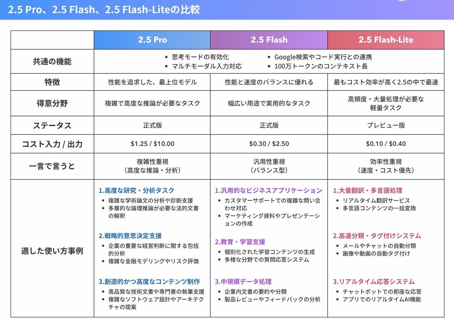 コスト効率と速度を最適化した「Gemini 2.5 Flash」「Gemini 2.5 Pro」の安定版提供開始。「Gemini 2.5 Flash-lite」もプレビュー公開
