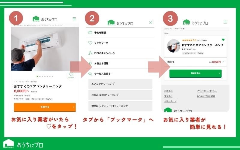 エアコンクリーニング・ハウスクリーニングの予約サイト「おうちにプロ」は、ユーザーがお気に入りの業者をリストアップできるように「お気に入り機能」を追加しました。