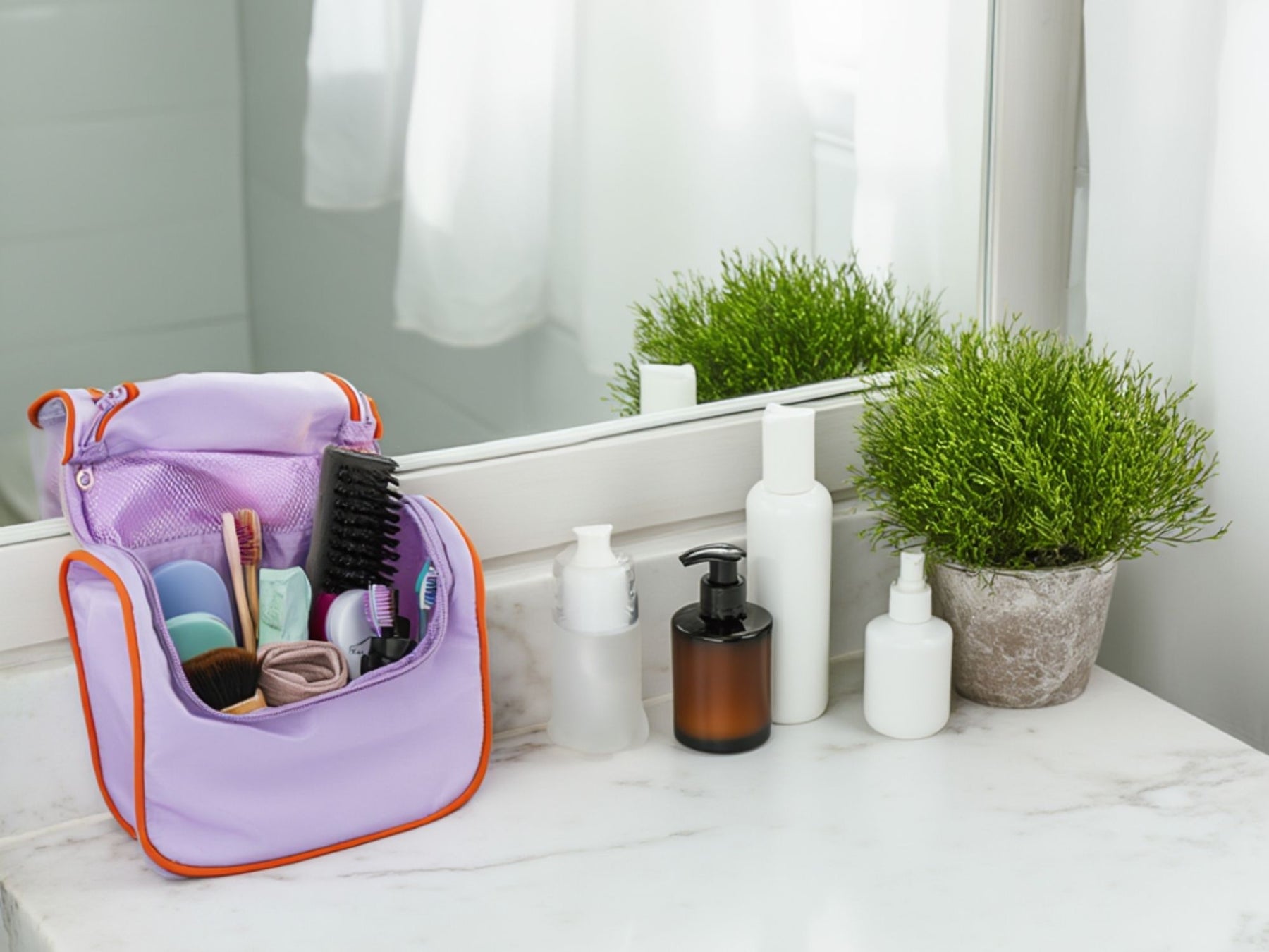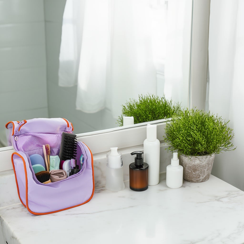 立てて使え、壁掛けもできます。大容量なので、長期連泊にもしっかり対応。