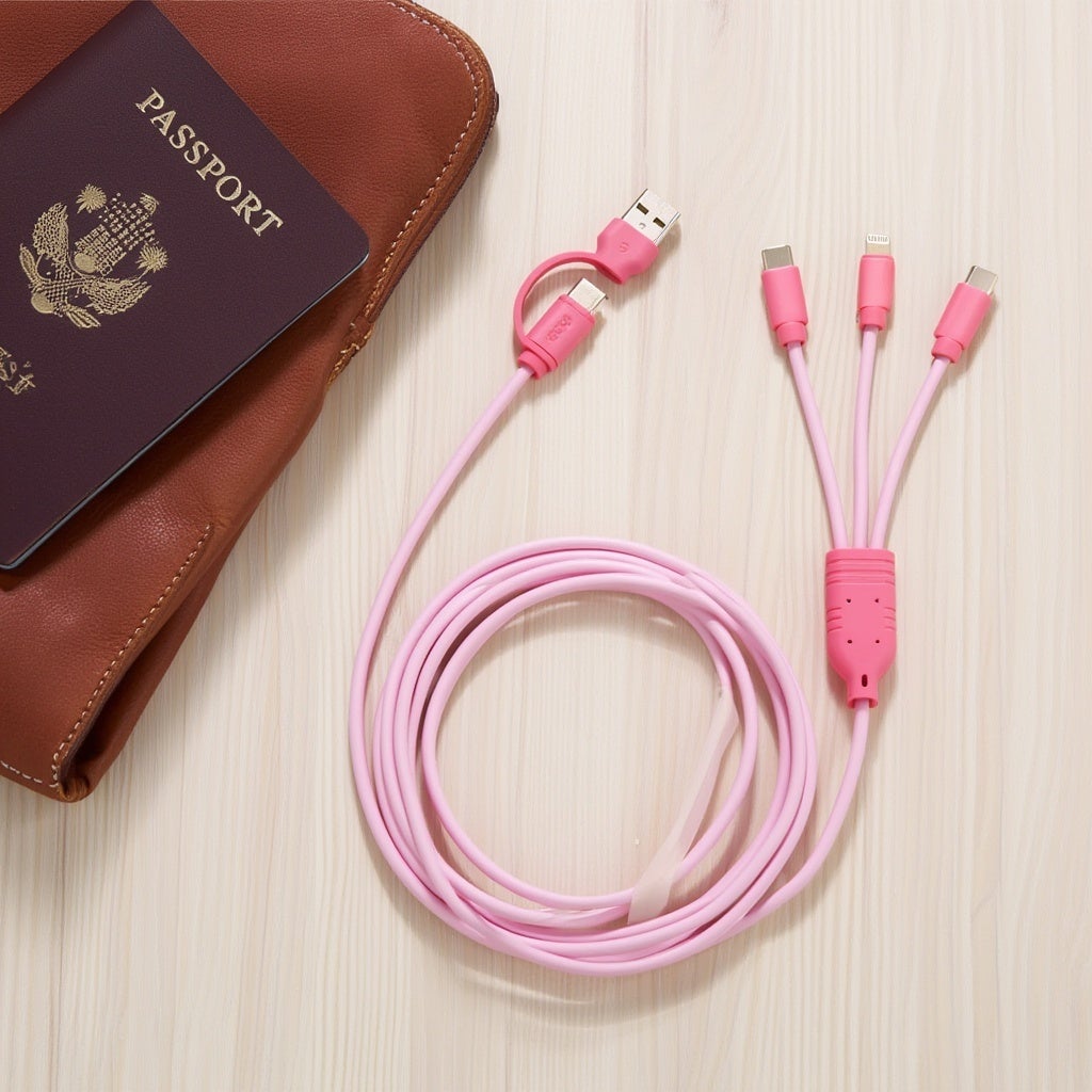 機器に合わせて複数のケーブルを持っていくことは面倒。そんな時は、Micro USB Type-B、USB Type-C、Lightningの3つが1つになったケーブルがおすすめ。