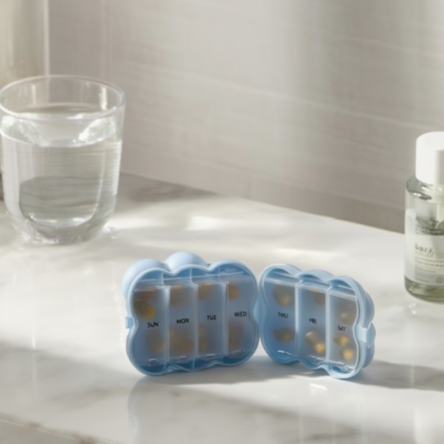 1週間分の薬やサプリメントを曜日ごとに分けて管理できます。