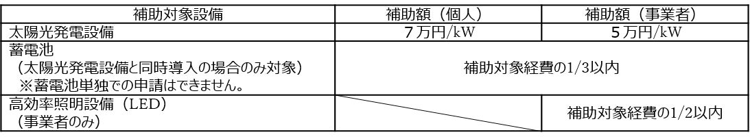 補助対象設備及び補助額