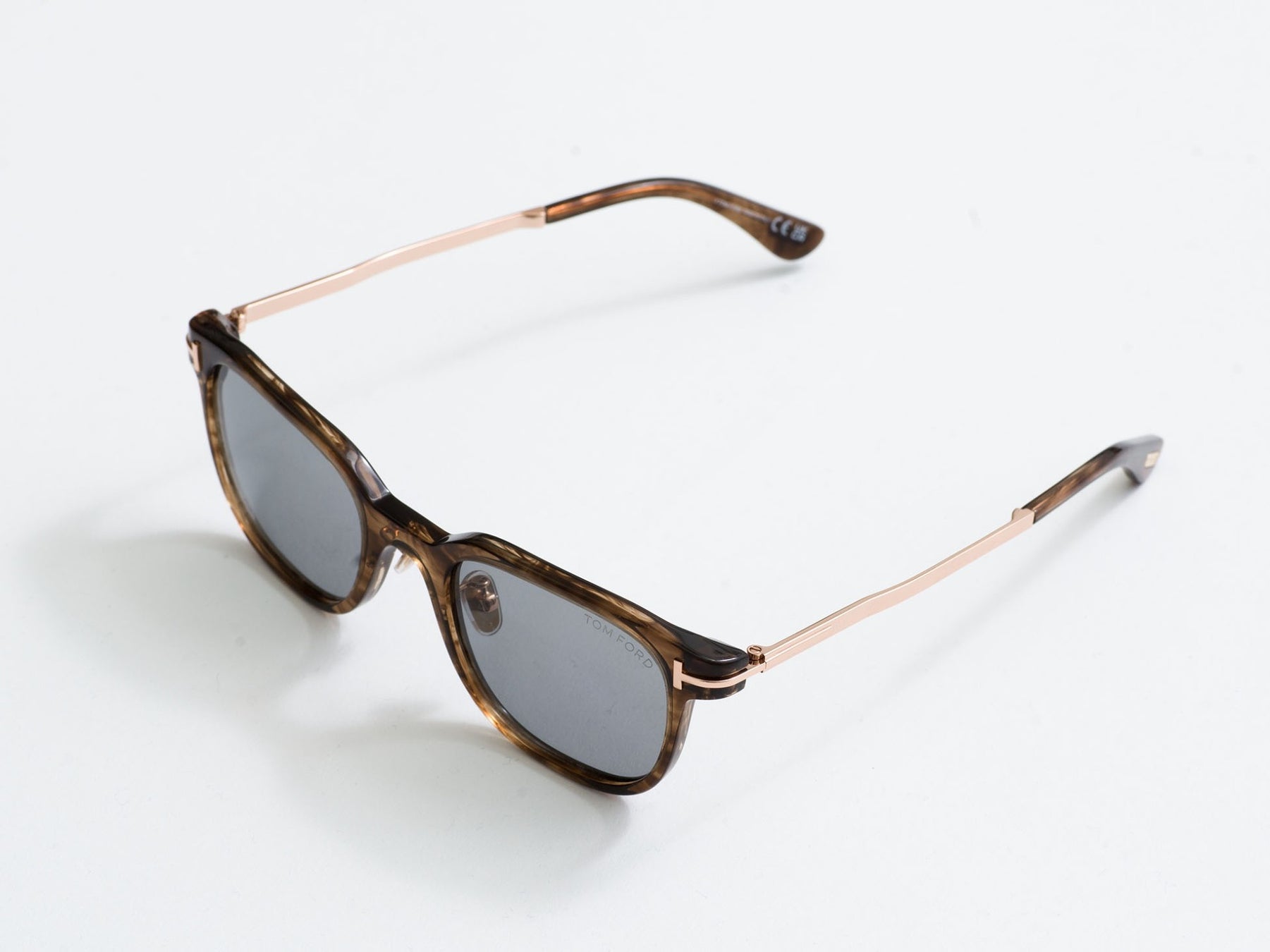 ロンハーマンウィメンズとしては初めてとなる、TOM FORD EYEWEARとのエクスクルーシブサングラスの登場。アジア人の顔にも美しくフィットする様に設計されたモデルです。テンプルとフレームサイドのブランドアイコン''Tマーク''が、トム フォードでは珍しいメタル仕様になっており、知的で品のあるローズゴールドカラーが、さり気なく顔まわりを素敵に演出してくれます。フレームも肌なじみの良いブラウンで、日常使いからシックな装いまで幅広くマッチする素敵なサングラスとなります。