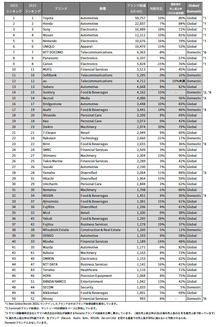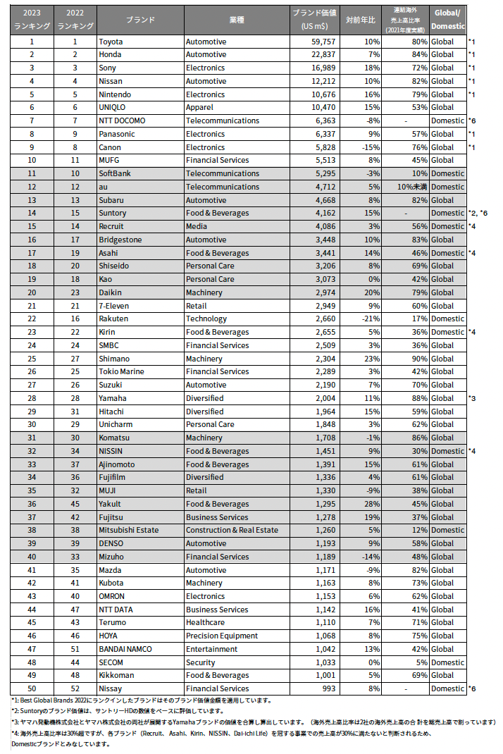Best Japan Brands 2023 (1-50位)
