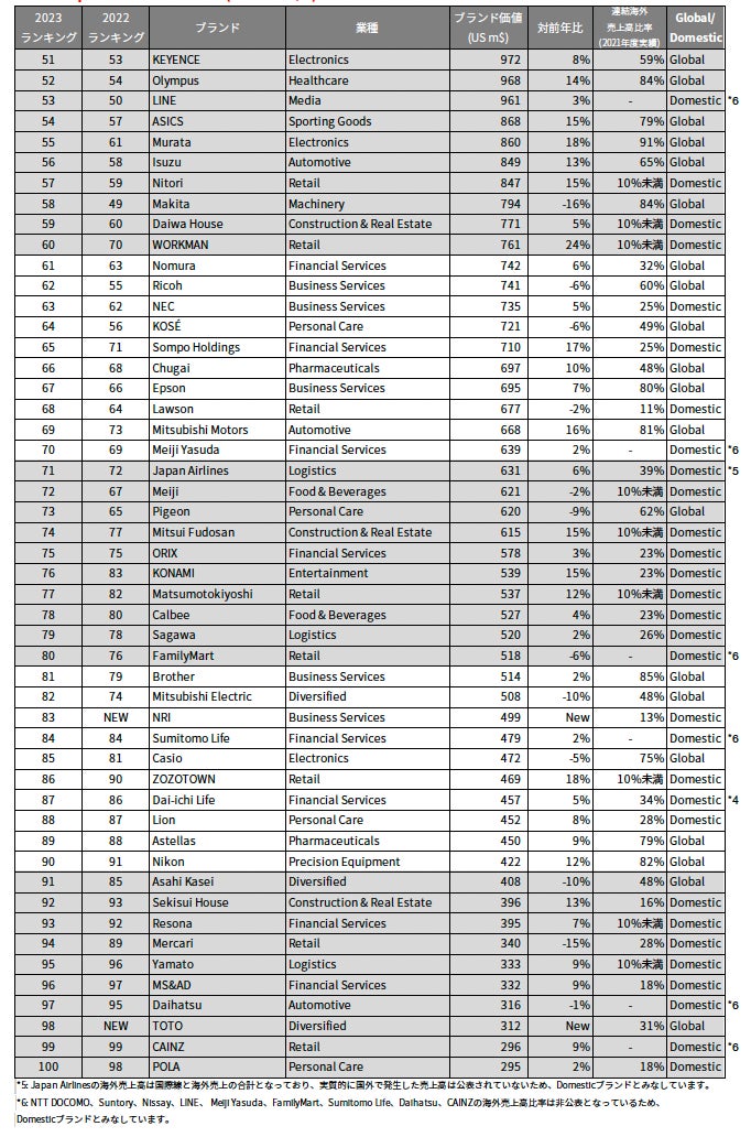 Best Japan Brands 2023 (51-100位)