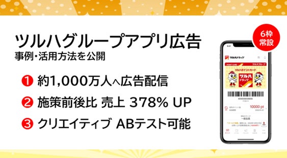 【アドインテ】ツルハグループアプリ広告、半年以上【ほぼ満稿】の配信事例を公開!施策前比で 新規顧客131%伸長など好事例多数輩出!