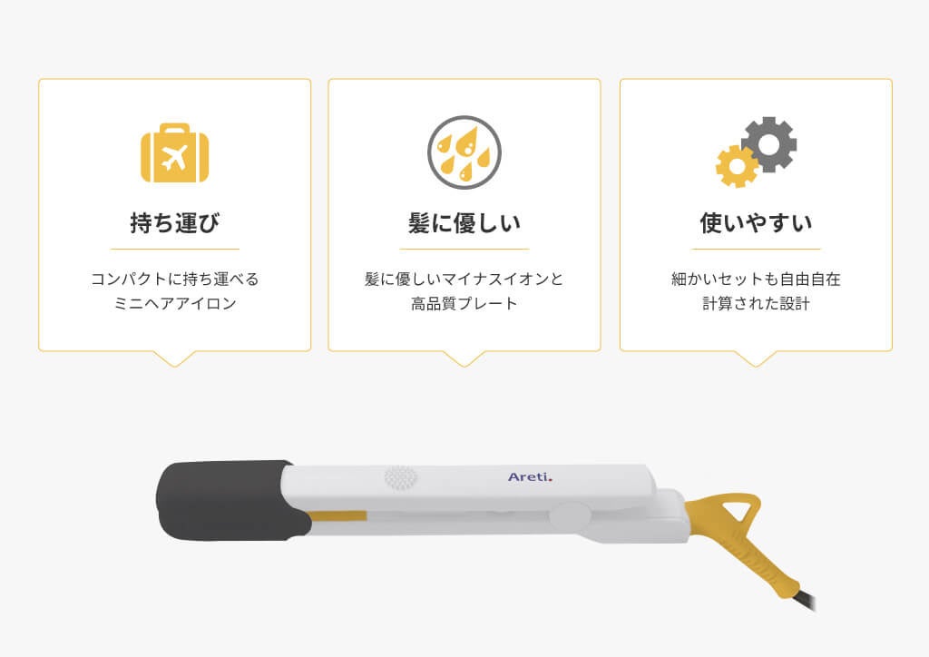 美容家電メーカーAreti.(本社:東京都中央区 以下アレティ)は手のひらに乗るミニサイズのヘアアイロンi19214の新色を8月26日(金)に発表。ミニサイズでもお直しだけではなく普段通りのスタイリングが可能な、コードタイプの安定した温度が特徴です。