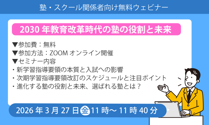 次期学習指導要領の改訂を見据え、民間教育現場に求められる変化と「選ばれる塾」の在り方を40分で整理します