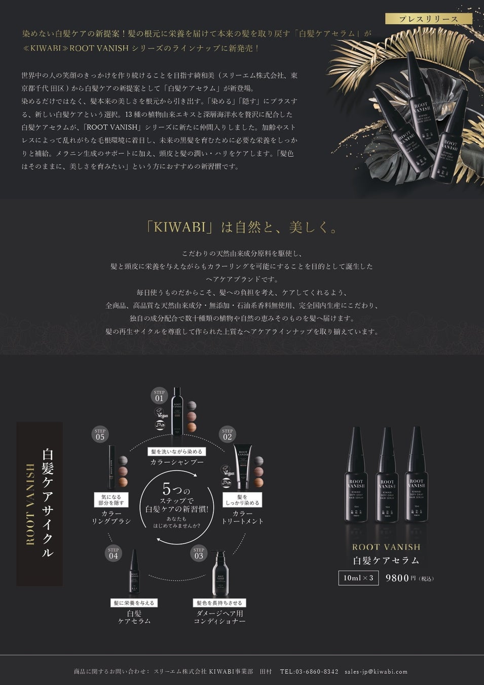【染めない白髪ケアの新提案】髪の根元に栄養を届けて髪が持つ本来の美しさを引き出す「白髪ケアセラム」が≪KIWABI≫ROOT VANISHシリーズのラインナップに新発売!