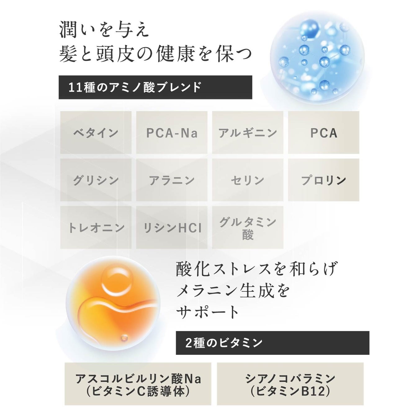 白髪ケアセラムは、髪の色を育むために必要な栄養を多角的にサポート。 ポリフェノール(カキタンニン)や亜鉛、11種のアミノ酸、ビタミンC・B12など、髪と頭皮の健康を守る美容成分をバランスよく配合しています。 酸化ストレスや栄養不足など、年齢サインが気になる頭皮と毛髪に、多角的にアプローチしながら、毎日のケアで自然な髪色を保ちやすい環境を整えます。「白髪を隠す・染める」にとどまらず、髪全体の印象まで整える、新しいケアのご提案です。