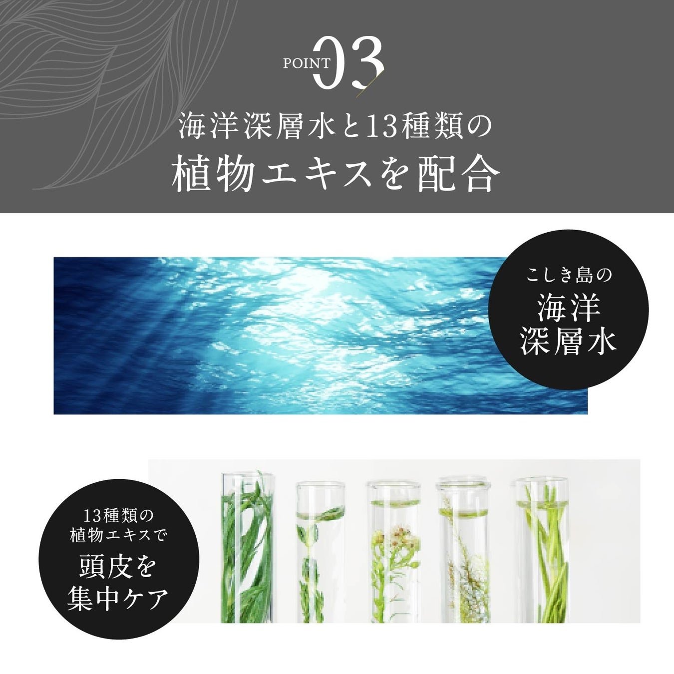 3.頭皮から整える、海洋深層水と 13種類の植物エキスを配合